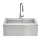Most outdoor kitchen sinks give you functionality, which is great but lacks space and become less functional the larger the event or party you have. The Coyote Farmhouse Sink is the exception to this, offering more than enough room to clean up after your party, fill large pots, and even doubling as an ice bin to keep your beverages cold on a hot summer day. This 30-inch sink is designed for large capacity with 9-inch-deep basin giving you ample space for all your outdoor kitchen needs. Featuring 11 3/8-inch-tall faucet for filling those large pots and pans, making cleaning a breeze.