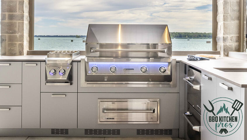 - Ambient control panel lighting adds a modern touch to your outdoor kitchen.